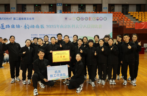 12月16日17:30,南京医科大学江宁校区体育馆主馆内,“医路康锦·韵动南医”教职工八段锦比赛火热举行。机关分工会代表队以饱满的精神面貌参赛,并获得一等奖好成绩。