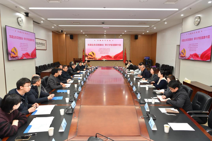 12月17日,财务处党支部联合江苏省审计厅派出审计三处党支部、江苏省审计厅内部审计指导监督处党支部、南京工业职业技术大学审计处党支部、学校审计处党支部开展“党建业务深度融合 审计护航健康中国”主题党日活动。活动由支部书记黄宏杰主持。